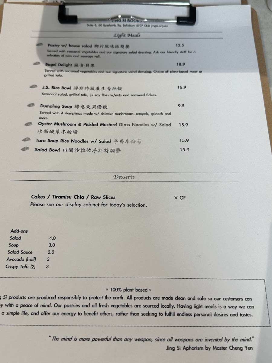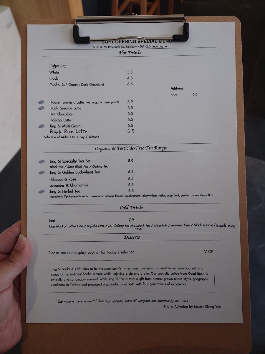 Jing Si Books & Cafe (Brisbane) 靜思書軒 Menu